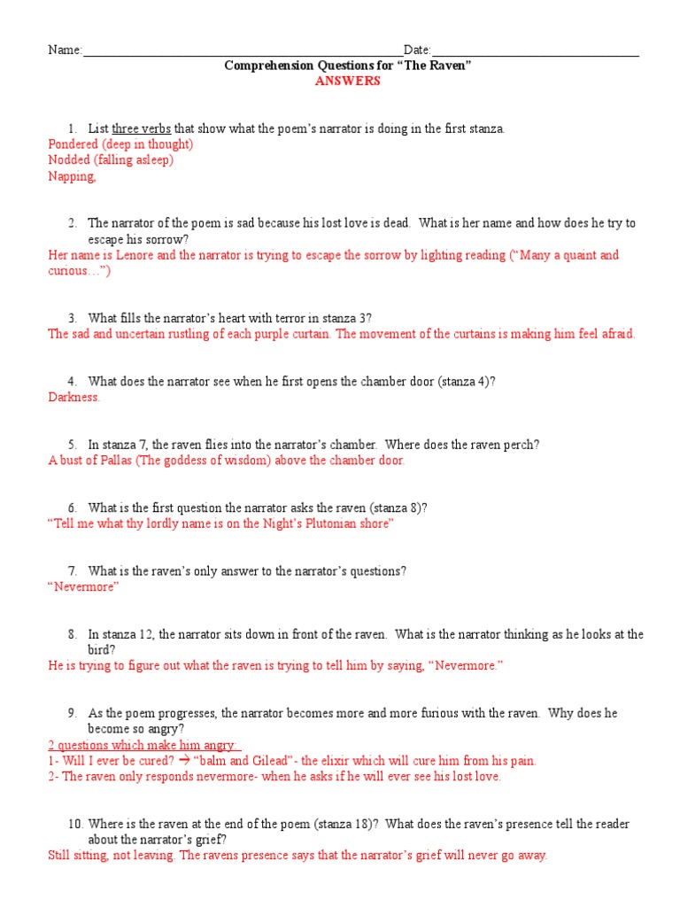 Why does Poe do this. The Raven dates from 1844 and presents us with an odd prophecy of a man who has lost his love. The raven poem summary pdf Read this article to know about the theme in The Raven by Edgar Allen Poe.